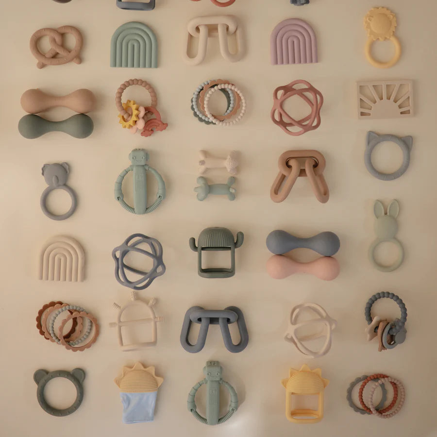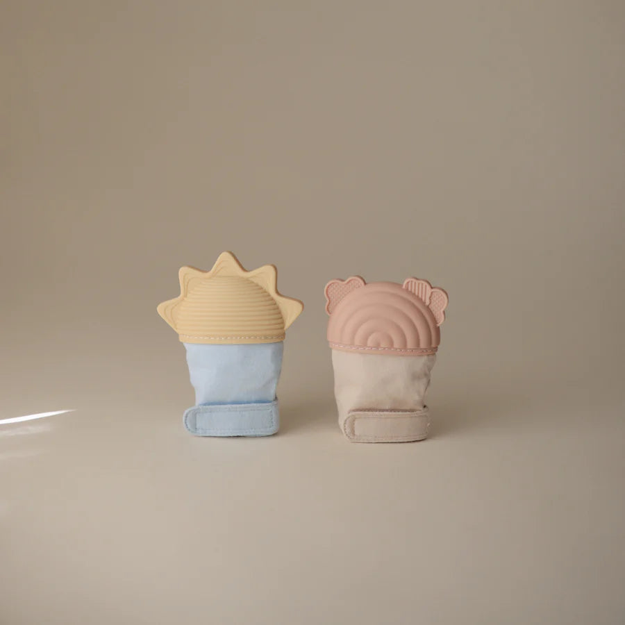 Cuando a los bebés les empiezan a salir los dientes y quieren morderse las manos, el guante de dentición Mushie es la solución perfecta para calmarlos. Una cubierta de silicona texturizada de grado alimenticio cubre los dedos para aliviar las encías doloridas. Su diseño tipo guante y la correa ajustable son ideales para bebés pequeños que aún no dominan el mordedor. El suave tejido de algodón protege la delicada piel del bebé del exceso de saliva. El guante se desliza fácilmente sobre las manitas y se puede usar en la mano derecha o izquierda. Un suave crujido estimula los sentidos auditivos del bebé para una mayor sensación de alivio. Diseñado con formas atractivas y colores relajantes.