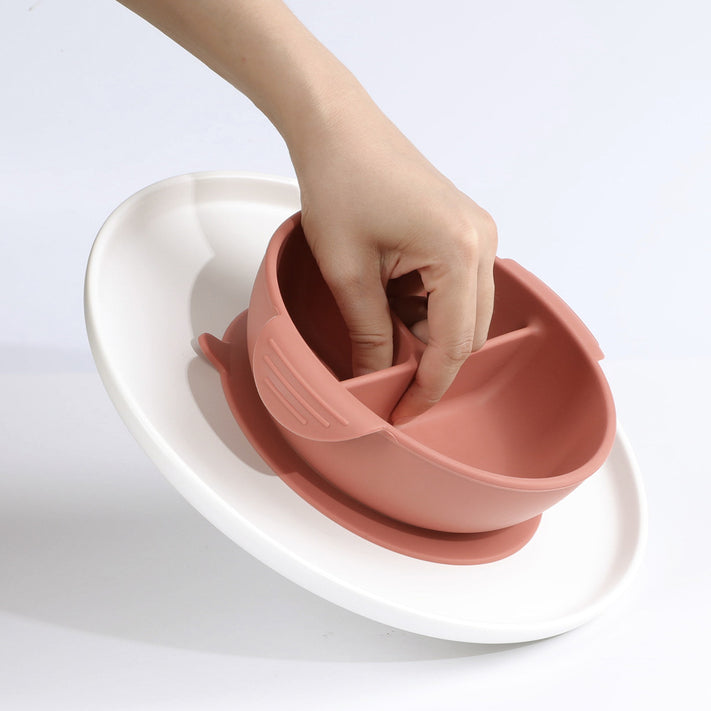 Los bowls de silicona con divisiones Haakaa incluyen una base de ventosa que se adhiere muy bien a cualquier superficie lisa, haciendo muy dificil que tu hij@ pueda dar vuelta el plato o tirartelo por la cabeza si es que no le gustó el menú (si, les encanta hacer eso!!)
