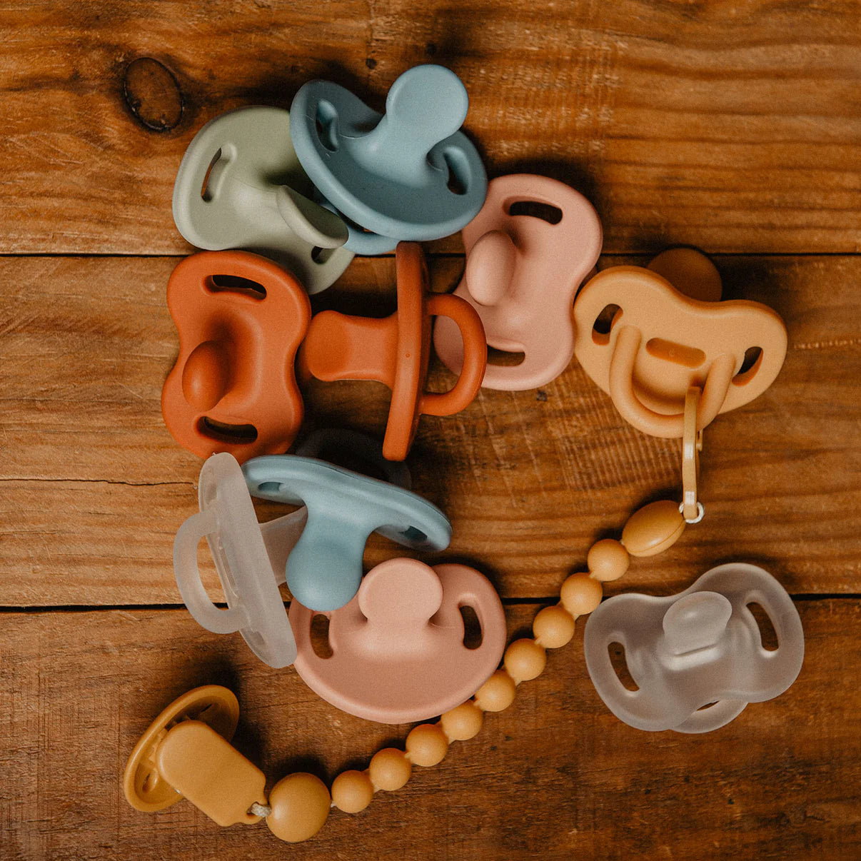 Material de Silicona Ultra-Suave: Fabricado en silicona fina y ultra-suave con acabado arenado, este chupete ofrece una textura que imita la del pezón materno, proporcionando máxima calidez y flexibilidad. Esto ayuda a adaptarse perfectamente a la cavidad palatina del bebé, evitando presión extra.