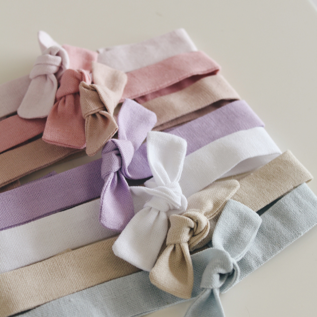Cintillo para guaguas confeccionando con Lino, se adapta a las cabecitas más delicadas desde recién nacidas hasta los 6 meses aproximadamente.
