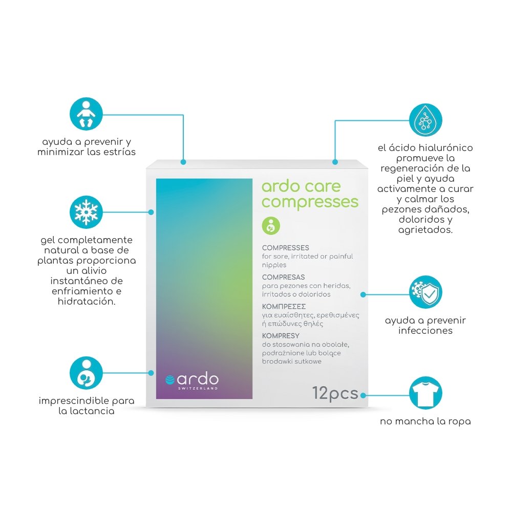 ¿Dolor al amamantar? Cuidado natural intensivo para pezones adoloridos, irritados y agrietados, eso es lo que te entregan las Compresas Ardo Care. Están hechas con un gel 100% vegano que humecta los pezones secos dejando un efecto de frescura que entrega alivio inmediato.