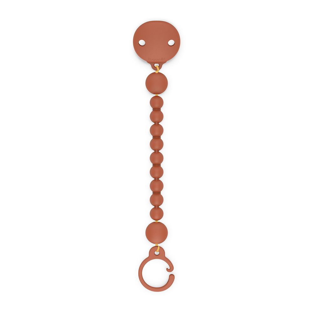 Este porta chupete permite sujetar los chupetes a la ropita del bebé, evitando así que caiga al suelo, se ensucie, o se pierda. La pinza que se sujeta a la ropa lleva unida una argolla en la que introducir el chupete. Para bebés a partir de 0 meses.