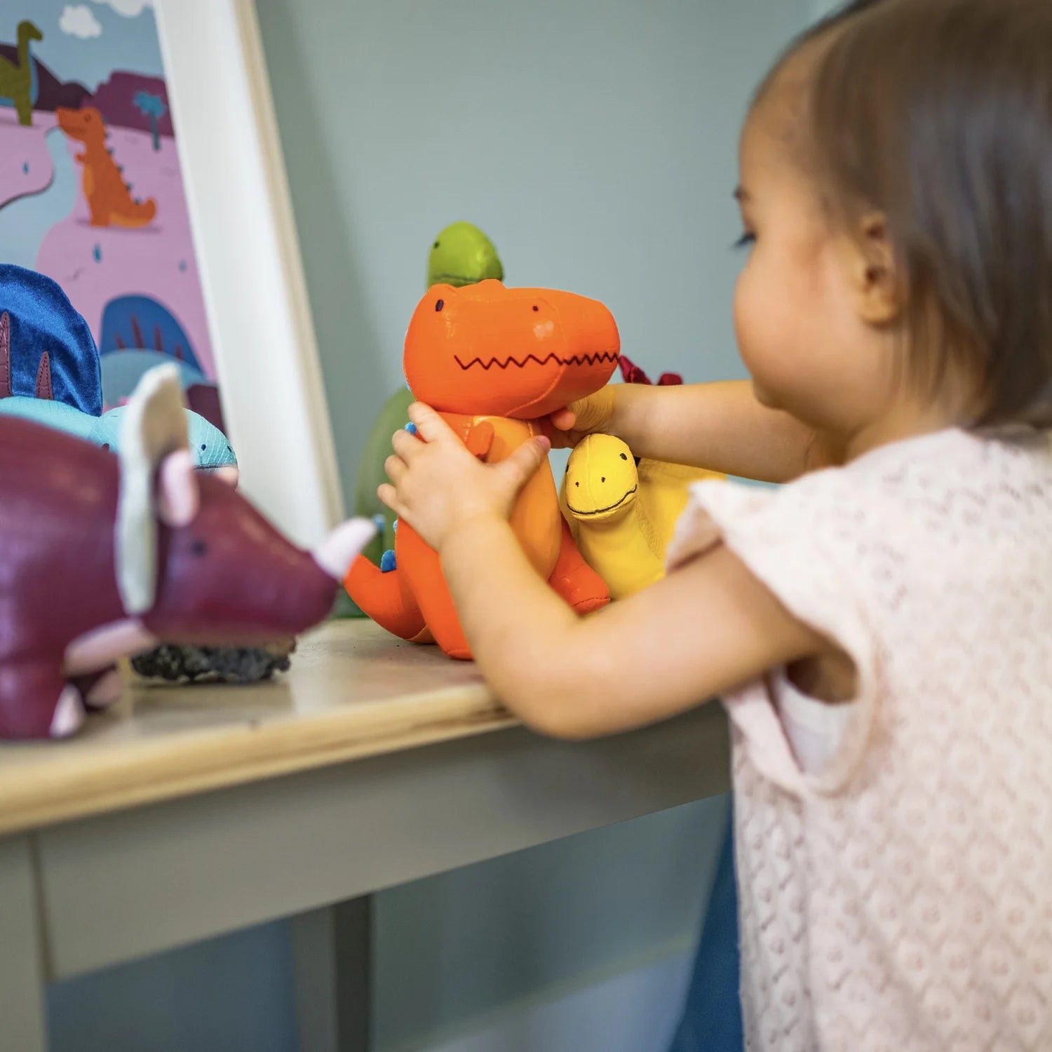 Rex el Tiranosaurio es un adorable dinosaurio de vivos colores que alegrará el día a cualquier niño.
