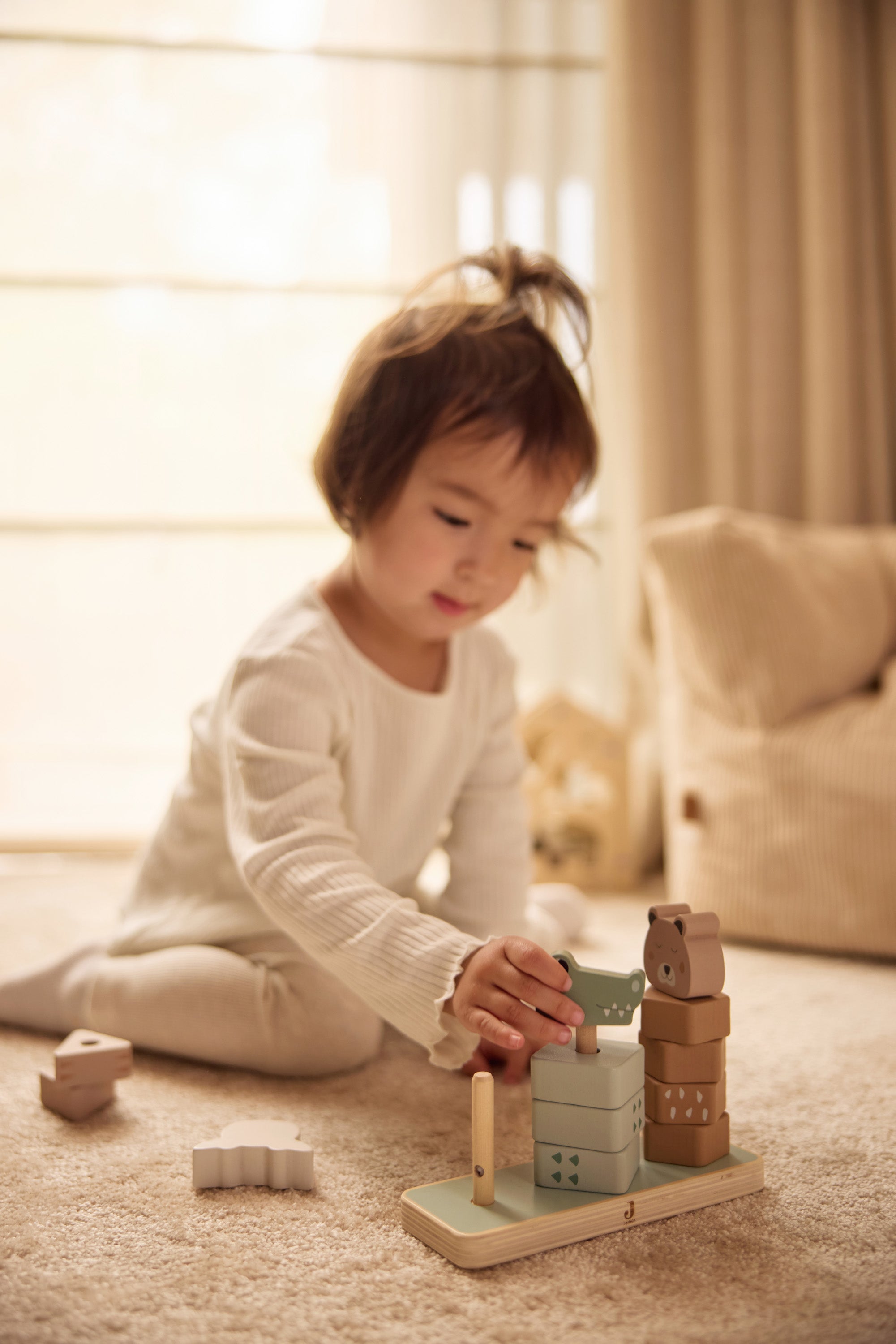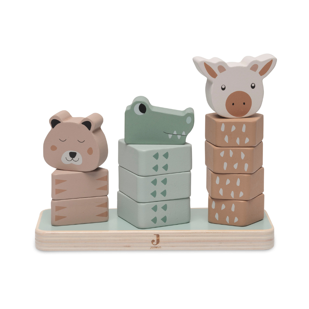 ¡Es hora de que tu pequeño construya y juegue! ¿Qué mejor manera de hacerlo que con una torre de madera apilable de 3 animales de la jungla diferentes? Estas torres constan de diferentes bloques y colores y ayudan a tu pequeño a distinguirlos. Por eso, jugar con juguetes de madera también es muy bueno para desarrollar la motricidad fina. Nuestros juguetes de madera también son sostenibles y están hechos de madera 100 % certificada por el FSC. ¡La jirafa en color caramelo, el cocodrilo en verde ceniza y el guepardo en color galleta hacen que esta torre apilable sea un placer para ver!