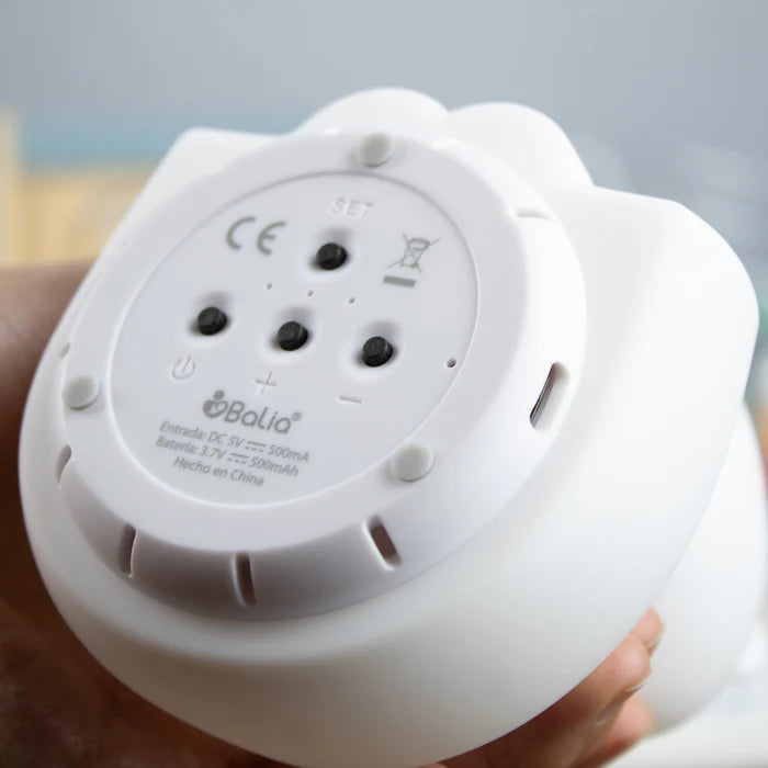 Esta lámpara con sonido blanco no solo ayuda a calmar y dormir a tu bebé, también está diseñada para adaptarse al ritmo de tu hogar. Su luz regulable, textura suave, materiales resistentes y sonidos relajantes hacen que sea perfecta para usarla día y noche, en cualquier rincón. Conóce sus principales características: