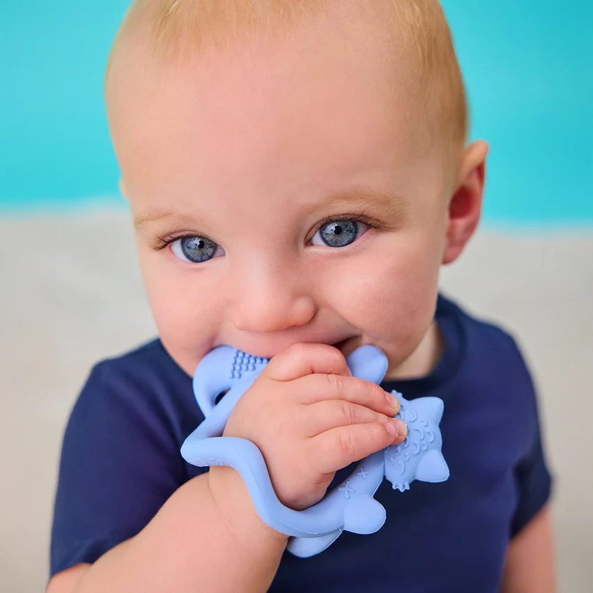 Cuando la dentición aprieta, este mordedor salva el día. Suave, liviano y pensado para manitos pequeñas, este mordedor de silicona grado alimenticio se usa como pulserita para que tu guagua lo tenga siempre a mano (y no termine en el suelo cada 2 minutos).