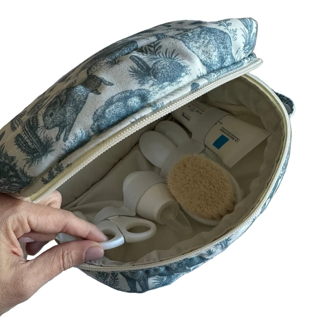 Este neceser sirve para todo tipo de uso. Ideal para llevar todas las cosas de tu guagua ordenadas y a la vista ya que cuenta con elásticos en el interior y un bolsillo. Puedes llevar sus remedios, cremas, peineta, cosas de higiene, etc. Es super amplio, liviano y práctico.
