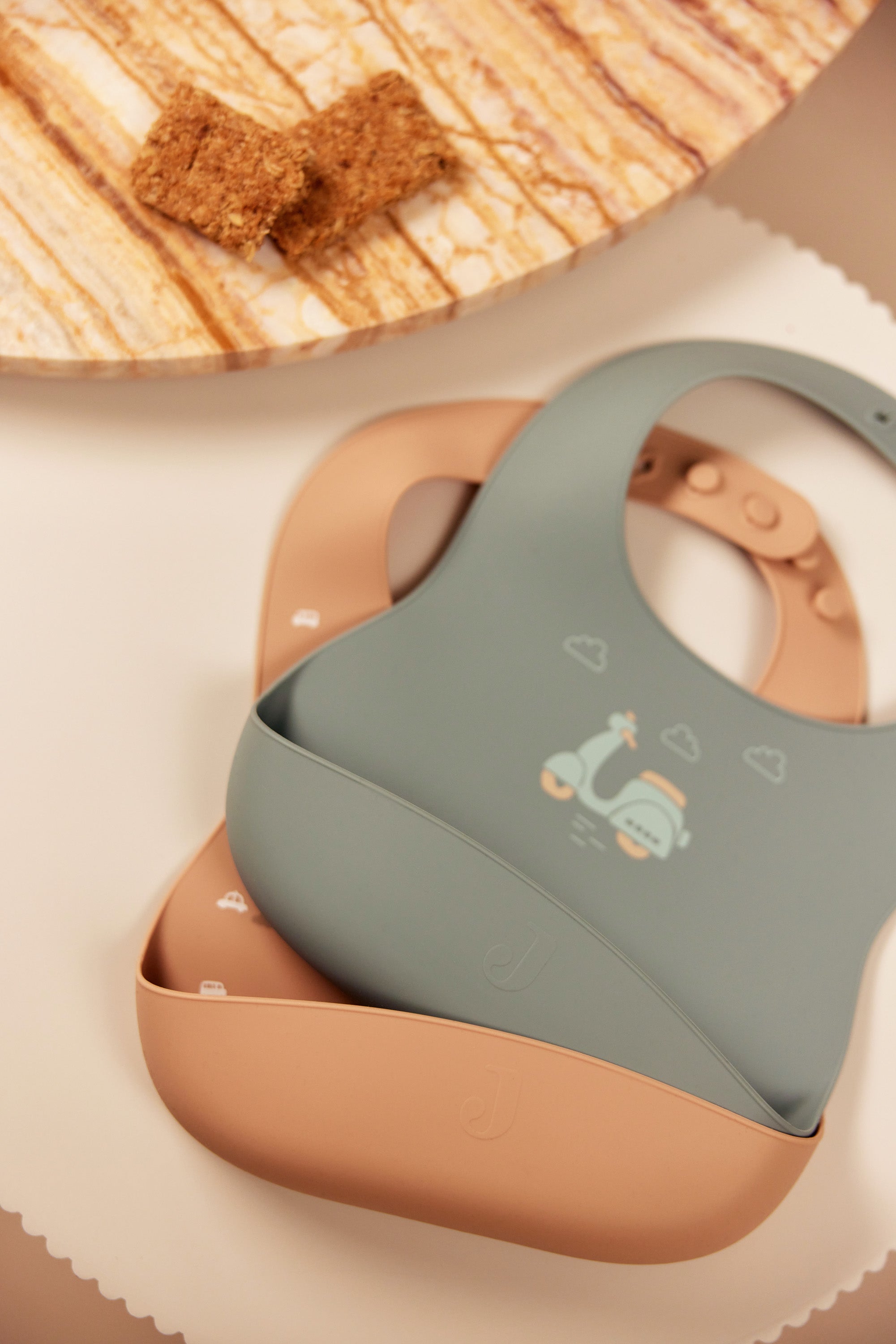 Tu peque puede unirse a la comida con este babero flexible de silicona. Estos baberos son aptos para lavavajillas, tienen una práctica bandeja y un cierre ajustable para que crezcan con tu pequeño. Hechos de silicona 100 % libre de BPA, PVC y ftalatos, son aptos para lavavajillas hasta 70 grados, ¡ideal, verdad?