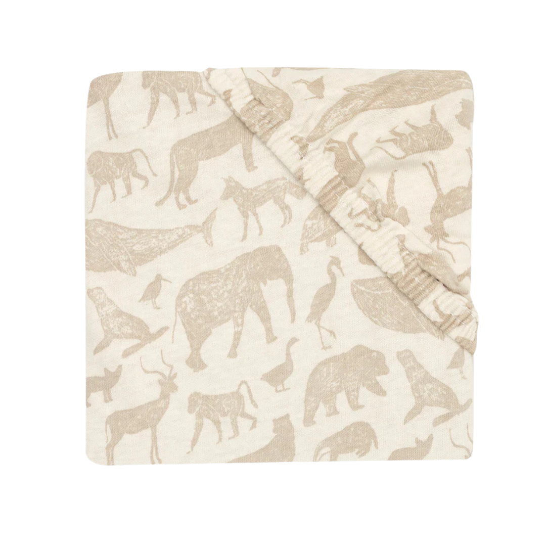 El estampado de animales aventureros lleva a tu pequeño a una aventura llena de sueños. La sábana bajera se ajusta fácilmente al colchón gracias a las bandas elásticas en cada esquina. Disponible en varios tamaños para cunas y moisés, y en verde oliva y turrón.