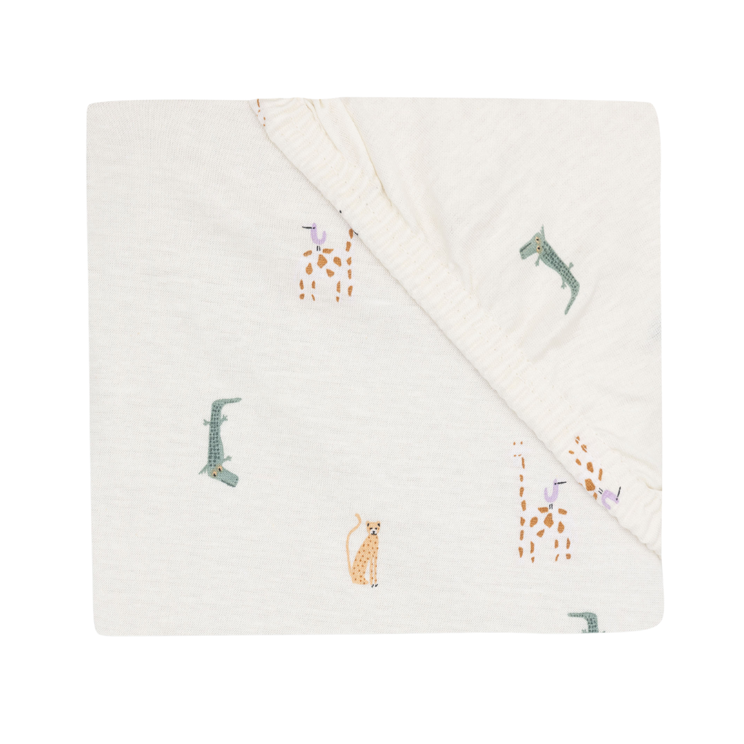 Mantén el colchón de tu pequeño seguro y cómodo con esta bonita sábana ajustable. El alegre estampado Jungle Jambo dibuja una sonrisa en la cara de tu pequeño y hace realidad la fantasía de la jungla. La sábana ajustable se ajusta sin esfuerzo alrededor del colchón gracias a las bandas elásticas en cada esquina.