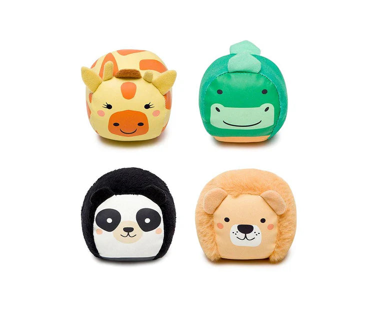 El set de 4 peluches de la granja incluye león, una jirafa, un panda y un cocodrilo que acompañan al bebé en sus juegos.