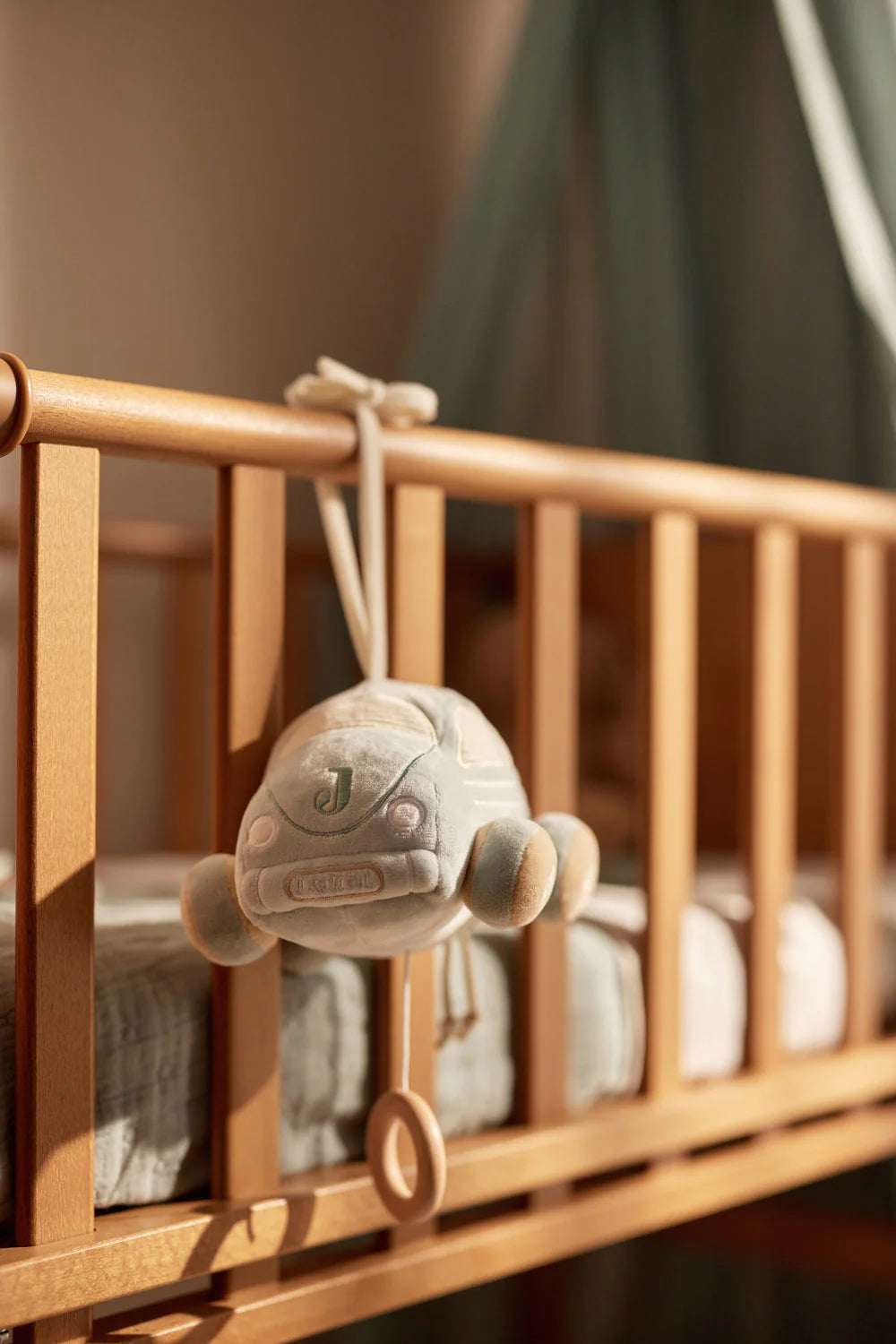 Deja que tu pequeño se quede dormido con nuestro adorable cochecito musical On the Go. Este suave cochecito verde mar cuenta con varias ruedas color galleta y ventanas de pana. Tira de la cuerda para escuchar a tu pequeño cantar la relajante canción de cuna. Este cochecito musical es el compañero perfecto para arrullar a tu bebé con un toque de suavidad y los encantadores sonidos de esta dulce melodía.